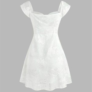 Gorgeous and super feminine white lace mini dress from viral online brand, Cider. Still sold on their website for $47 CAD plus tax! Bought this for my wedding/bridal season last year and never got to wear it, so it's still brand new with tags attached!