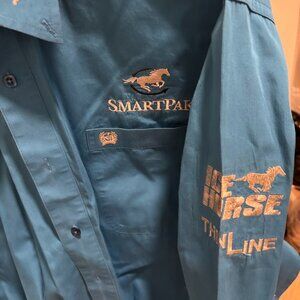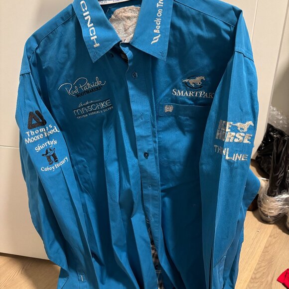 Beautiful Blue Rodeo Sponsor Shirt by Cinch, full embroidery on front, back, sleeves and collar. Great example no imperfections on this one extremely hard to find another one espcially in such great condition