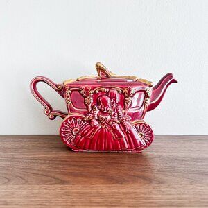 This exquisite vintage Ellgreave Pottery Co. teapot is crafted in the shape of Cinderella’s carriage, featuring intricate gold gilding and classic mid-century charm. Made in England between 1941–1952, it’s a perfect statement piece for collectors or home decor enthusiasts.