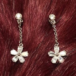 Beautiful dangle earrings made of silver color metal, nickel-free (allergy free), stud earrings, clear glass crystal in flower shape on dangle chain.