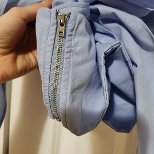 Beautiful dressy-casual halter top. Thin ties at the neck, zipper back, and ties into a bow over the zipper. I've had for years, it's very comfortable (surprisingly!), but have never found a time to wear it--just not my style sadly.