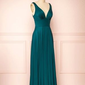 CINDERELLA DIVINE A-Line Satin V-Neck Dress with Slit