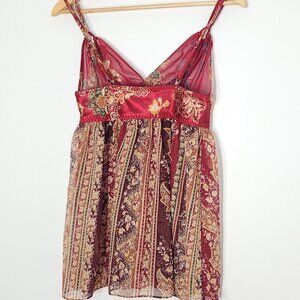 Cinema Etoile Gypsy Red Sheer Floral Bohemian Adjustable Spaghetti Straps