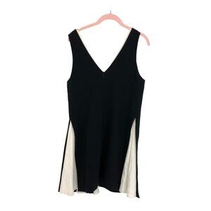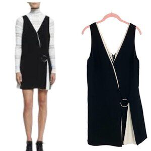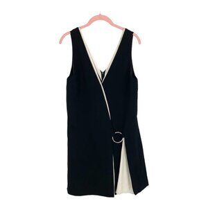 Cinq à Sept Two Tone Silk Ivory and Black Sleeveless Ring Detail Mini Dress