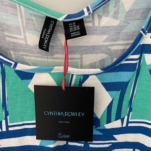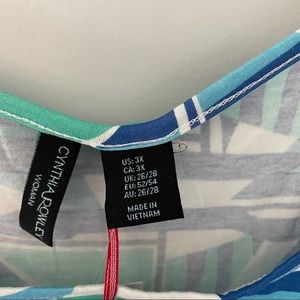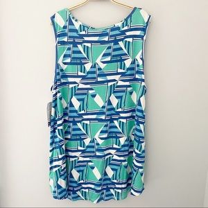Cinthia Rowley Curve Sleeveless Blue & Green Geometrical Pattern Top - Size 3X.