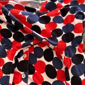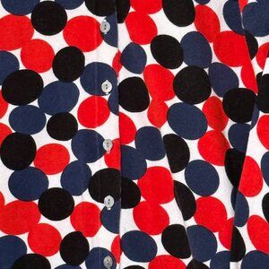 Eye catching design of Red, Navy and Black circles on a white background