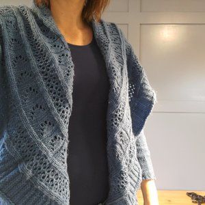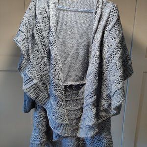 Beautiful Blue circular knit cardigan purchased in Banff Canada. Comes with wooden clasp and can be worn many different ways so can change it up. It is thick and cozy and perfect for winter.