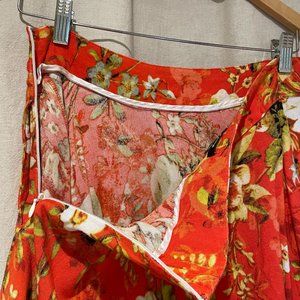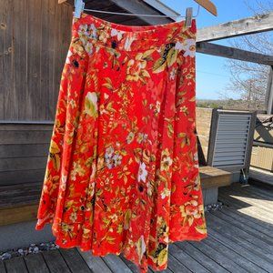 Circular skirt, linen, flowers patterne on bright orange, Premise, size 4.