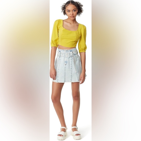 Circus NY Smock Back Puff Sleeve Crop Top Neon Green Women Size S