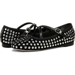 Circus NY by Sam Edelman Women's Black Metal Stud Fabric Cross Strap Ballet Flat