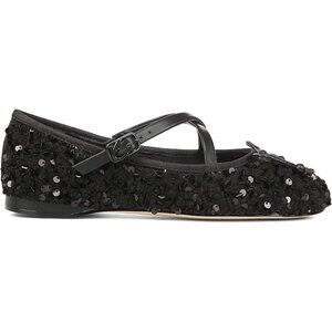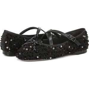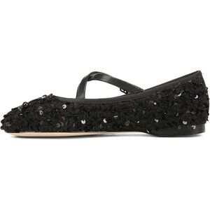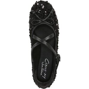 Circus NY by Sam Edelman Women's Black Shearling Fabric Cross Strap Ballet Flat