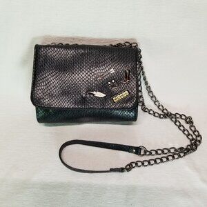 Circus by Sam Edelman black faux snakeskin crossbody bag with metallic strap. Please see all photos.