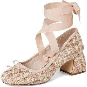 Up, up, and away in the ballet-inspired, lace-up Della with a beautiful block heel to strike a perfect balance. Looks great with short suits and bomber jackets.