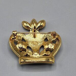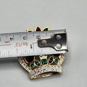 Ciro Crown Pin Brooch Christmas Jewelry Red Green Rhinestones Holiday Royal