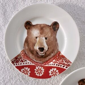 Ciroa Celebrate Holiday Christmas Bear In Sweater Dessert Snack Plates x2