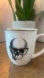 Chic white mug with a bold black skull graphic. Ideal for modern dining.