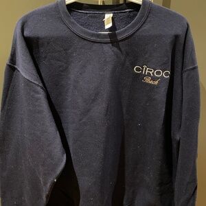 A custom made, perfectly stitched navy blue crew neck that has the “Ciroc Peach” logo in the upper left corner embroidered in white and peach. Created by a local business owner. Never worn.
