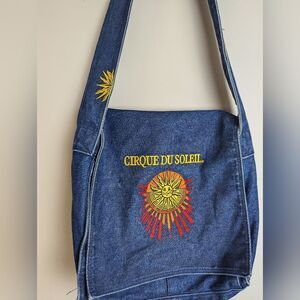 Cirque du Soleil Denim Shoulder Bag with Embroidered Sun Logo - Vintage Crossbod