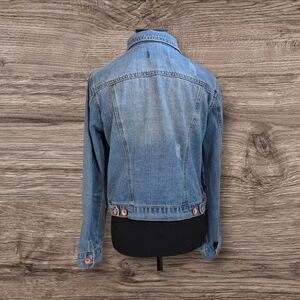 Elevate your casual wardrobe with this classic blue denim jacket. Perfect for layering and everyday wear. Length 22" Bust 36" Sleeves 24"