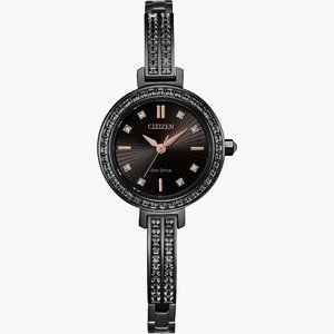For the women looking for a more subtle bling, the black-on-black colorway for the Citizen Silhouette Crystal watch is the perfect choice.