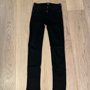 Citizen of Humanity slick skinny leg, super skinny. Size 27. Jet black jean. Very soft stretchy jean. Excellent condition. Measurement from crotch to was it is 8"