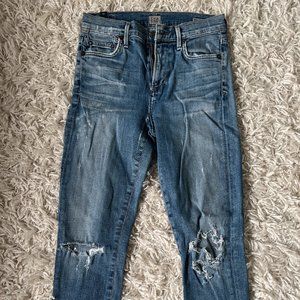 Citizens of Humanity High Rise Skinny Rocket Crop Blue Distressed Jeans Size 25