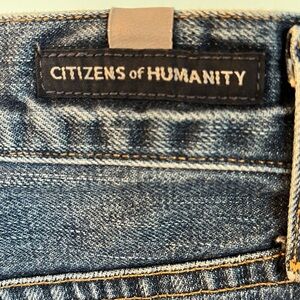 The iconic Citizens of Humanity Liya jean — a cult favorite for its vintage-inspired look and flattering fit. These high-rise, classic-fit crop jeans feature a straight leg with a slightly relaxed cut and a medium blue wash with subtle fading and whiskering. Cropped at the ankle, perfect for pairing with sneakers, boots, or heels.