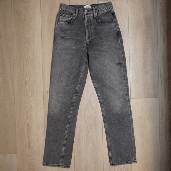 These are high-rise jeans with a fitted hip and thigh and an easy, straight leg. They're made with ultra-comfortable stretch denim that holds its shape over time.