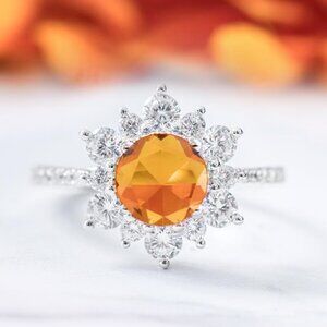 Citrine Snowflake / Flower ring, 925 Sterling Silver