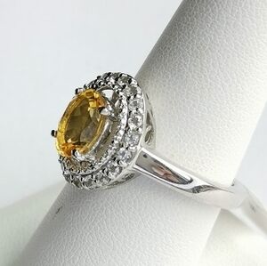 Citrine White Sapphire ring in Sterling Silver size 8.75