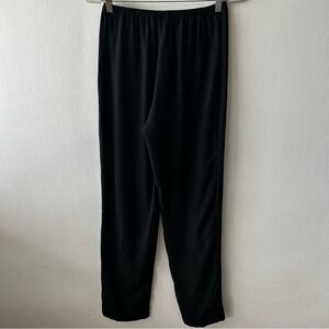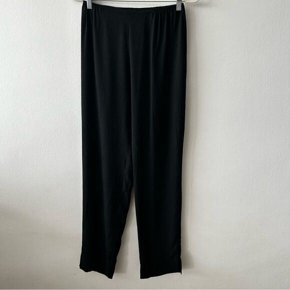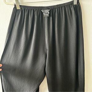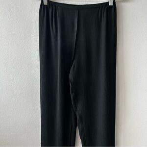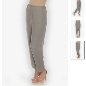 Our Silk pull on pant is back! Flat front with elasticized waist, tapered leg with a slit in 100% textured Silk