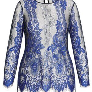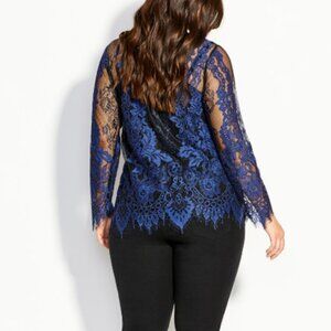 City Chic black and blue lace top. Does not include cami/lining. Can be worn with a cami underneath or for the more daring ladies, you can wear just a bra underneath. Can be dressed up or down.