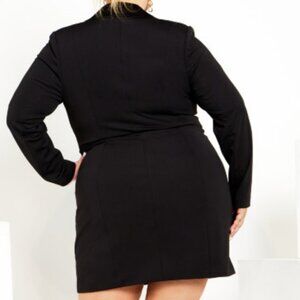 Turn some heads at your next event in the black Tuxedo Dress. Featuring a stunning collared lapel neckline with a figure-flattering double breast button-down design and full sleeves, this dress is sure to impress.