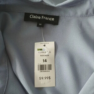 Claire France 3/4 Length Sleeve Button Down Blouse Blue 14