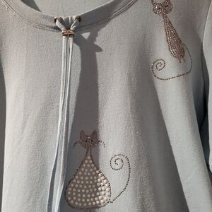 Claire France Canadian Brand 🇨🇦Charming Light Blue Cat Embroidered Top