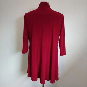 Cardigan hangs beautifully. 3/4 length sleeve. Flowy, lightweight fabric. Deep wine red colour.