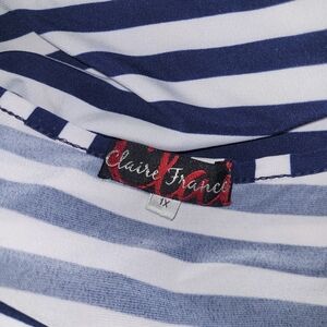Claire France Navy and White Striped Short Sleeve Drape Neck Top 1X