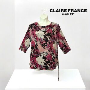 #ClaireFrance #PlusSizeTop #FloralBlouse #CowlNeckTop #MadeInCanada #StretchTop #Size1X #WomensFashion #Workwear #CasualChic