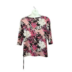Claire France, Plus Size Floral Cowl Neck Top, 1X, Pink, Black, Silver