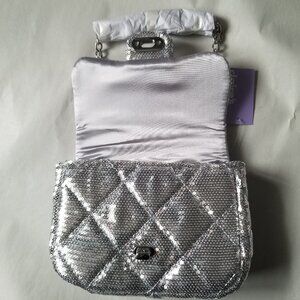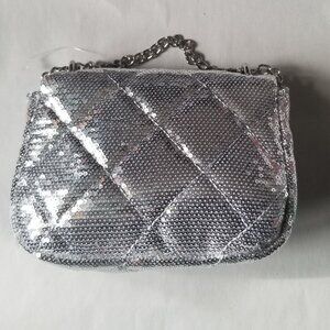 Claire's Silver Sequined Purse / Bag with silver chain strap
