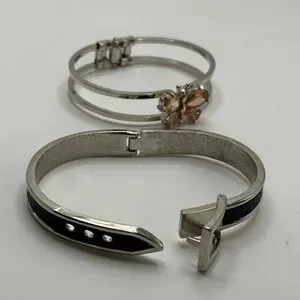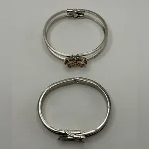 -silver tone double band clamper with a honey orange multi faceted crystal butyerfly