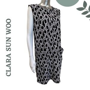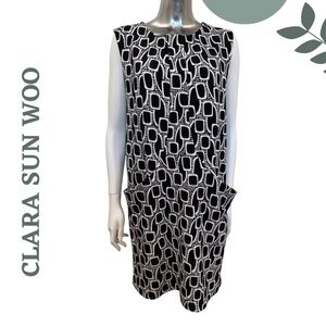 Clara Sun Woo Black & White Print Pocket Shift Dress Sleeveless – Size XS