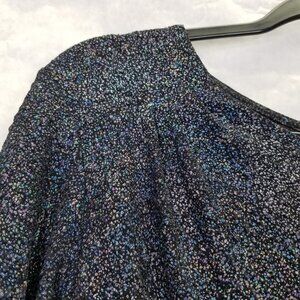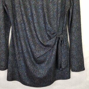 Clara Sun Woo Tunic Top Women's XL Metallic Speckled Black Tie Front Long Sleeve