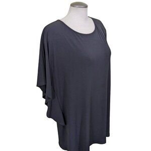 Clara Sun Woo Womens Tunic Top Size XL Black Dolman Sleeve Stretch Lagenlook