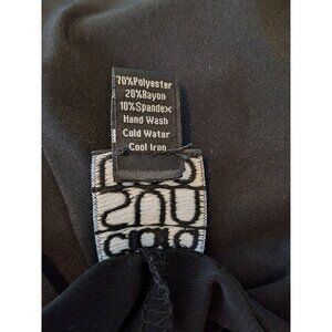 Elevate your wardrobe with this stunning Clara Sun Woo tunic top in size XL. The flattering dolman sleeves and relaxed fit make it perfect for any occasion, from travel to business and casual wear. The solid black color and classic theme add a touch of sophistication to your outfit. This is a blend of polyester, spandex, and rayon, this blouse features stretch for maximum comfort. It's a must-have for any fashion-savvy woman who wants to stay stylish and comfortable all year round, whether it's winter, summer, fall, or spring.