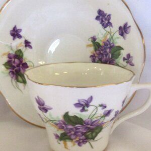 Clare English Bone China Tea Cup and Saucer Vivacious Violets, Gold Gilt H223