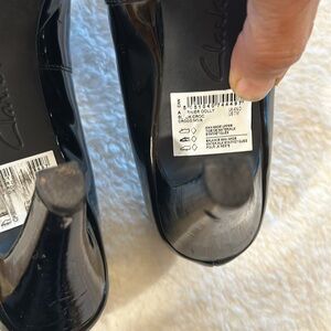 Patent shiny black. Wore once for special occasion. Heels have small Knicks. Not noticeable unless you’re examining! “Last pic shows.
