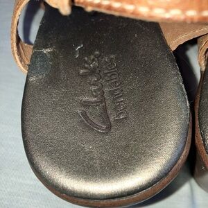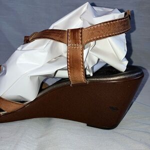 Clarks 8.5 women’s Tan Wedge Sandals with Elegant Lattice Straps