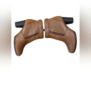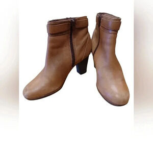 Clarks Ankle Booties Tan Leather Zip Up Heels Size 6