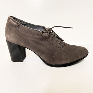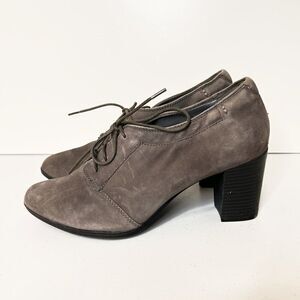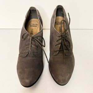 Clarks Araya Hale Gray Suede Lace-Up Block Heel Shootie